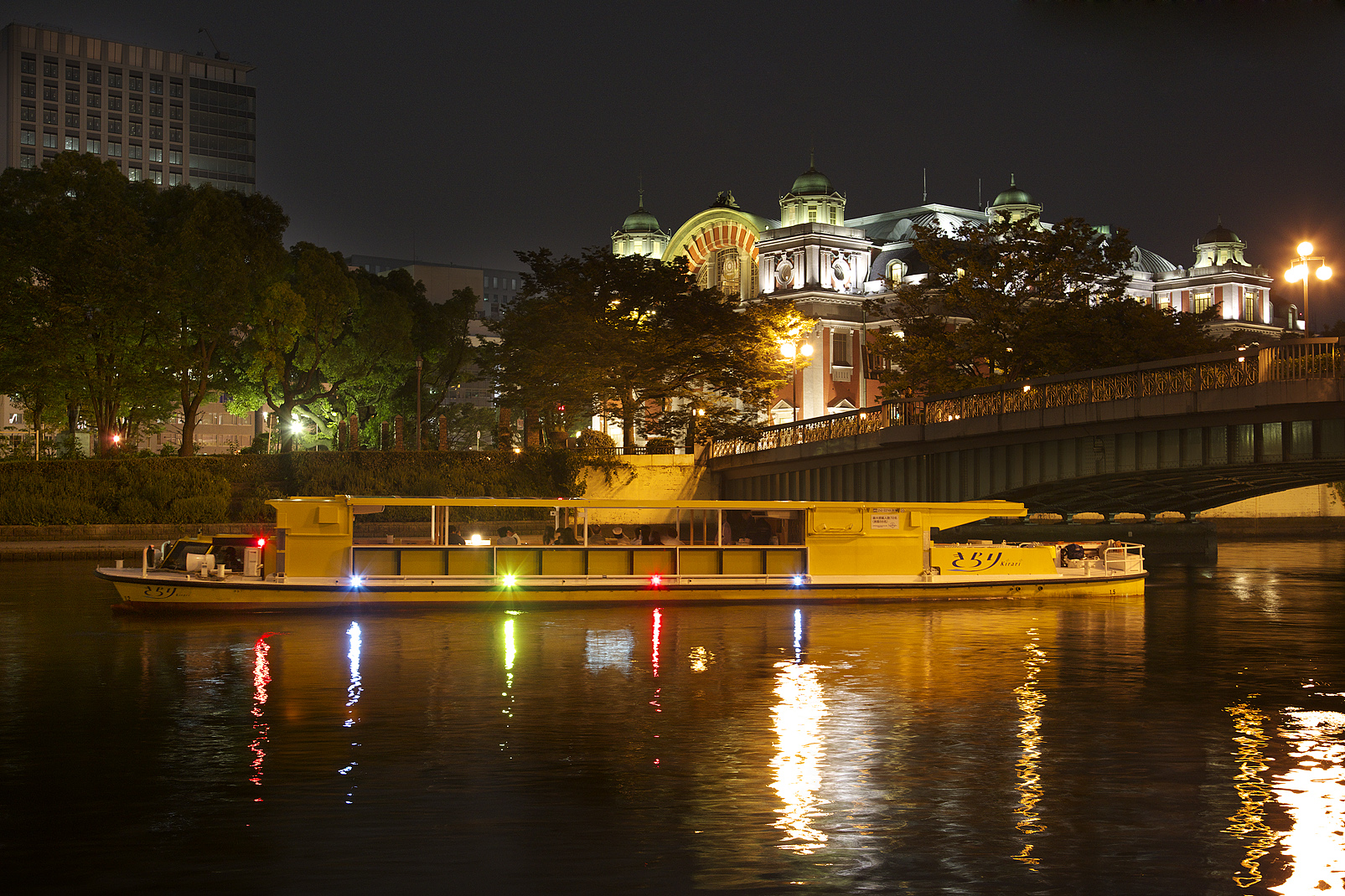 中之島ローズポートへと戻ってくる、見どころ満載のナイトクルーズです。