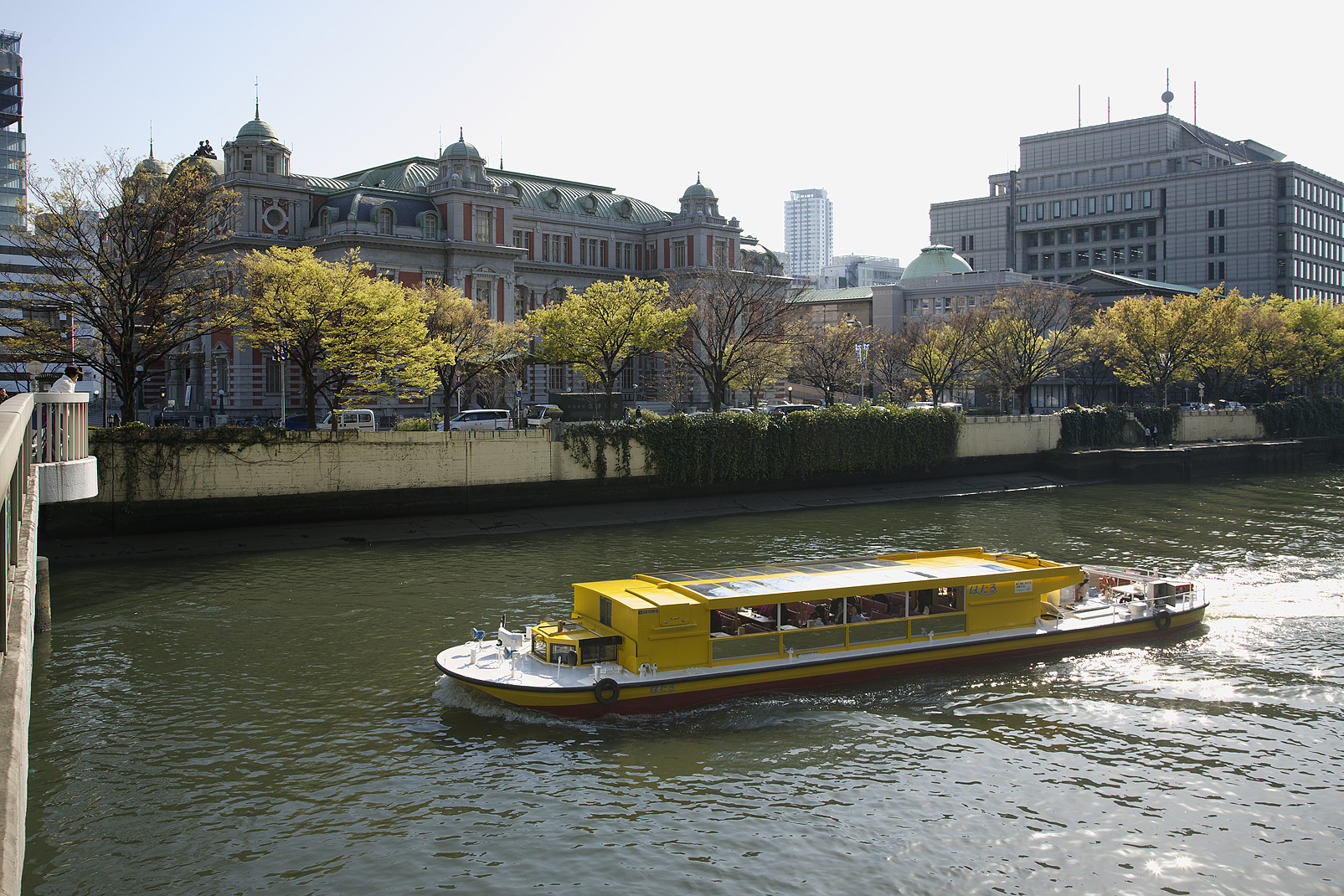 ABCホール前の「ほたるまち港」から中之島を経て、大阪の中心街を一周する楽しい船旅です。