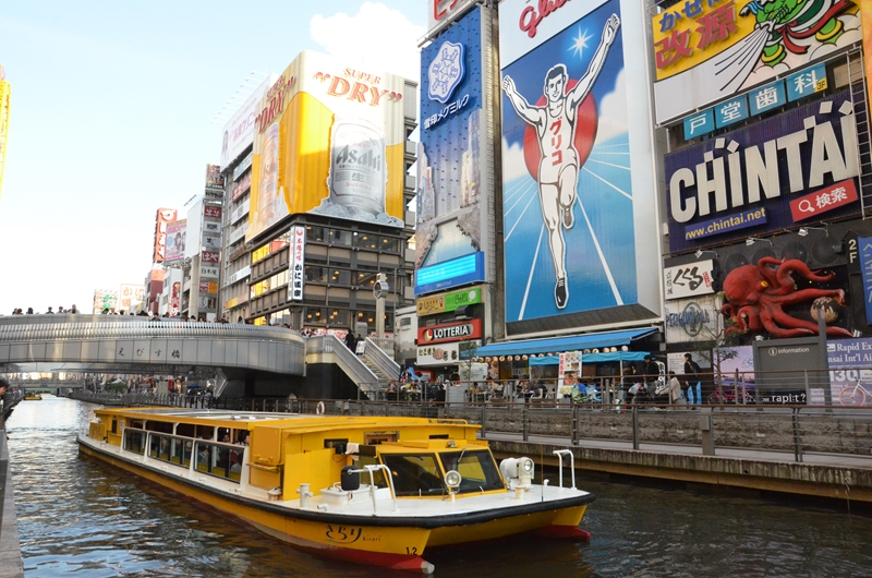 有名なグリコの看板を水上から見上げる道頓堀も周遊します。