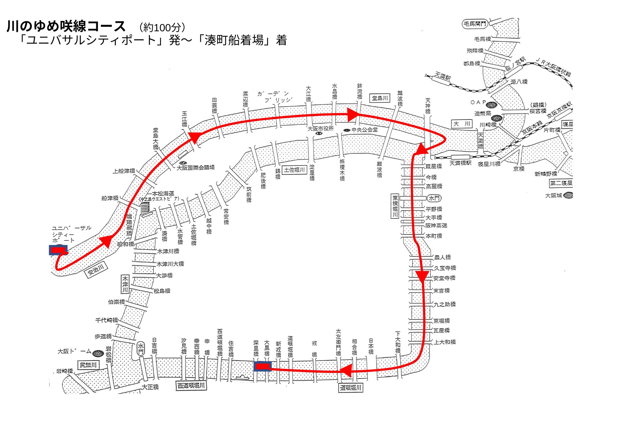 ユニバーサルシティポート発~湊町船着場着(約100分)