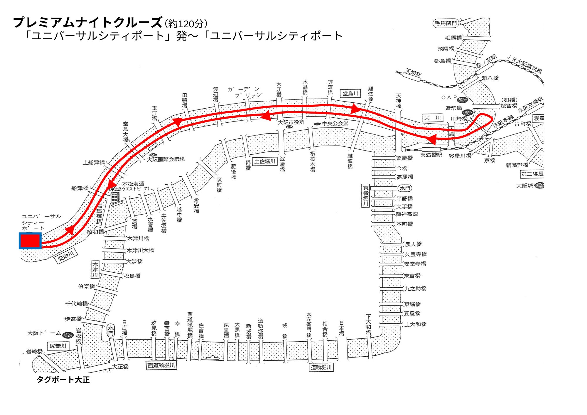 ユニバーサルシティポート発~タグボート大正着(約100分)